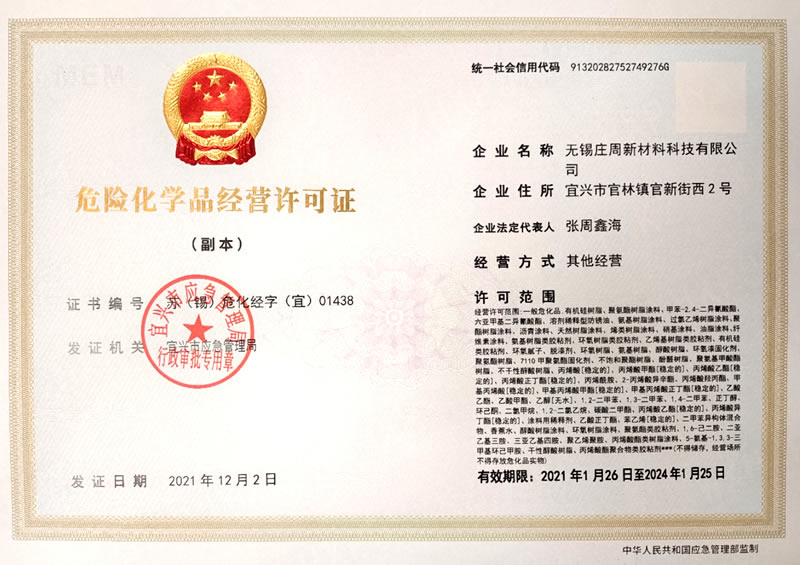 庄周企业成立于1992年,集科、工、贸为一体的股份制民营企业,是跨地区、跨行业经营合作,协同发展型企业,企业主要有无锡庄周新材料科技有限公司、无锡市庄周化学工程有限公司、宜兴市庄周生态旅游有限公司组成。主要经营范围:化工新材料开发;聚氨酯固化剂、聚氨酯涂料生产;化工原料的销售;电线电缆的生产销售;涂料工程、防腐工程、保温工程、透水地坪、透水混凝土的工程施工;生态旅游的开发、生态农庄的建设。企业以开拓创新,精益求精,力求更好的经营理念,以诚信求实,创新敬业的企业精神,竭诚为社会服务。