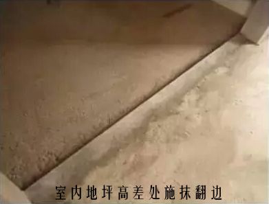 1.4为确保室内有高差室内地坪及室内窗台板地坪的标高准确,在有高差及窗台板外边应在浇筑地坪前根据标高控制线设置细石砼翻边,一方面该翻边直接做为有高差位置地坪浇筑时的挡板,防止浇筑地坪时,采用木方等材料临时将高差位置地坪进行隔断,造成收边处位置移位、不准确或收边过于毛糙等质量瑕疵;另一方面该翻边的上口是通过控制线确定的,其直接做为地坪浇筑过程的冲筋条使用,有效防止此特殊位置尺寸偏差过大。